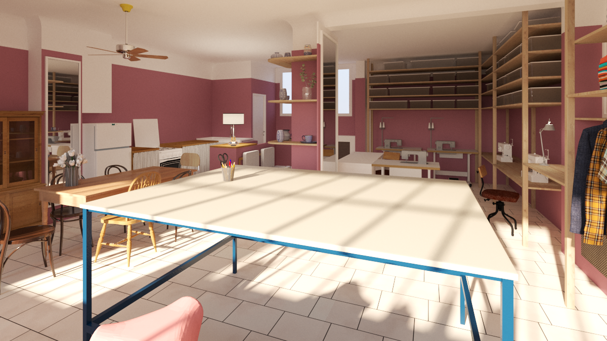 Un projet atypique s'il en est ! Elisabeth est costumière et fan de rose. Chassée de son atelier montreuillois, elle trouve à Pantin un nouveau lieu où tout est à (re)faire dans un temps record ! Le cahier des charges est bien rempli puisque ce nouvel atelier est non seulement un espace de travail mais également un lieu de rencontres et de vente.